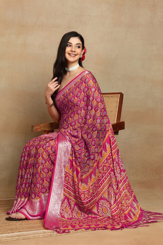 Beautiful Bandhani Printed Cotton blend Saree