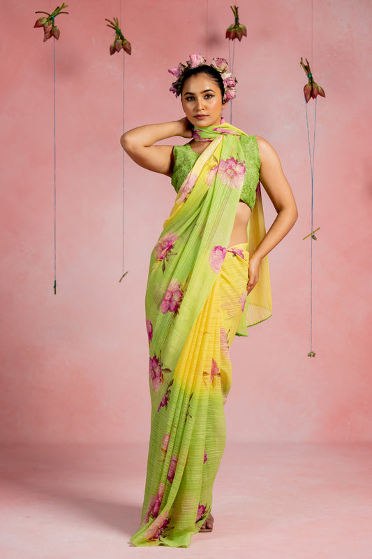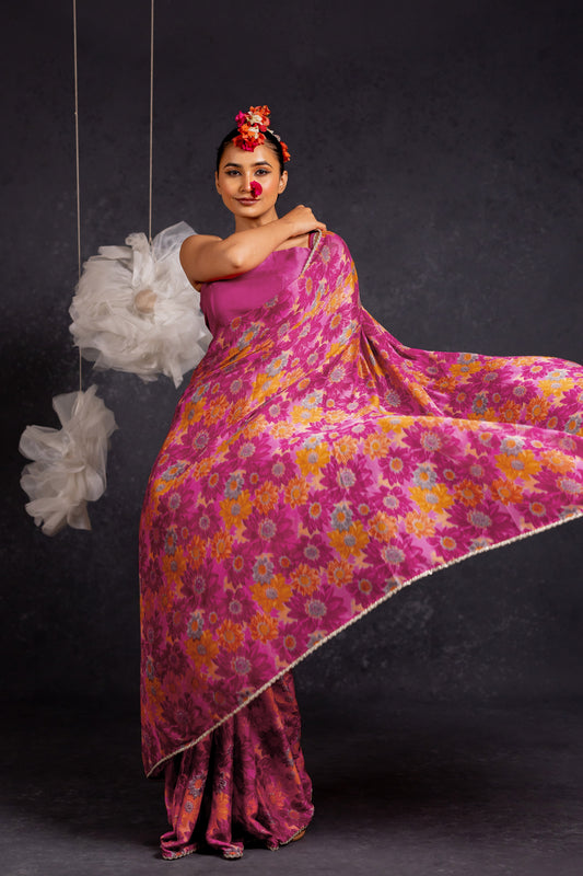 Women's Chiffon Floral Printed lace applique SareeRegular price Rs. 599.00Regular priceUnit price per-