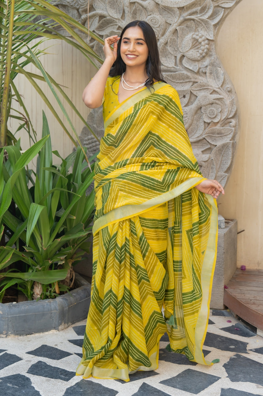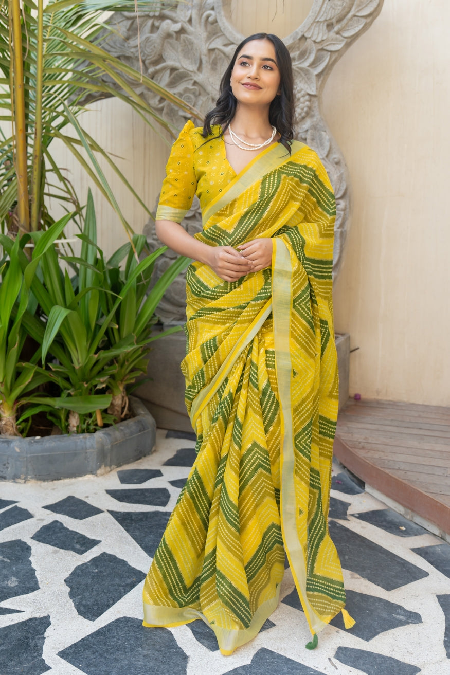 Beautiful Bandhani Printed Cotton blend Saree