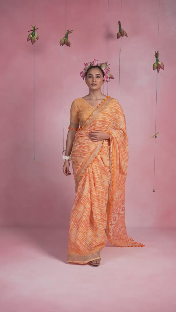 Discover the beauty of tradition with our exquisite cotton saree collection. Each saree is made of a Print pattern and border with Pom Pom Lace from high-quality, breathable cotton, ensuring comfort and style for every occasion. With a range of vibrant colors, intricate patterns, and stunning lace borders, these sarees embody the essence of Indian heritage while being perfect for modern wear. This saree is perfect for everyday wear, whether you’re running errands, attending a family gathering, or having a relaxed summer lunch with friends. .This is also perfect for smaller, less formal festive or cultural events like family get-togethers, poojas, or small celebrations with the stylish prints keep you looking chic.