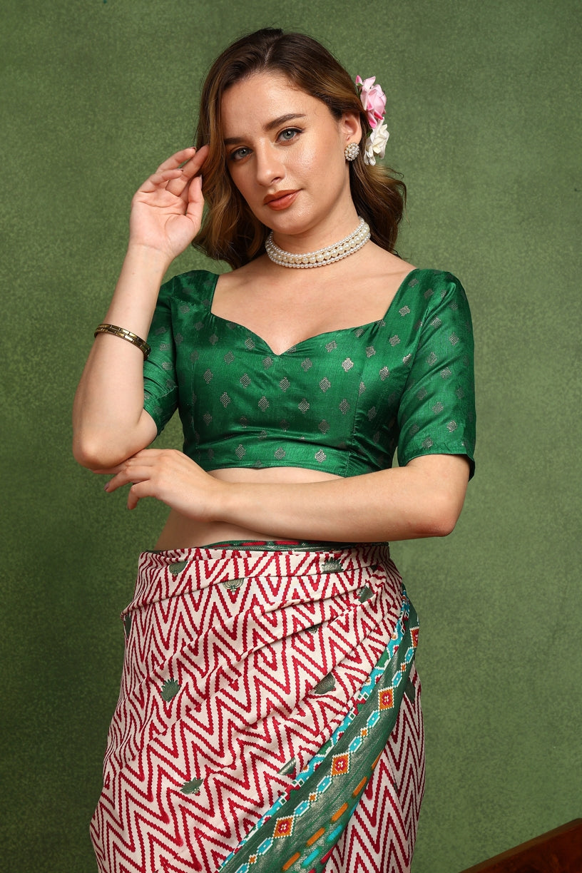 Beautiful Patola Foil Print Cotton Silk Saree with Unstiched Blouse Piece