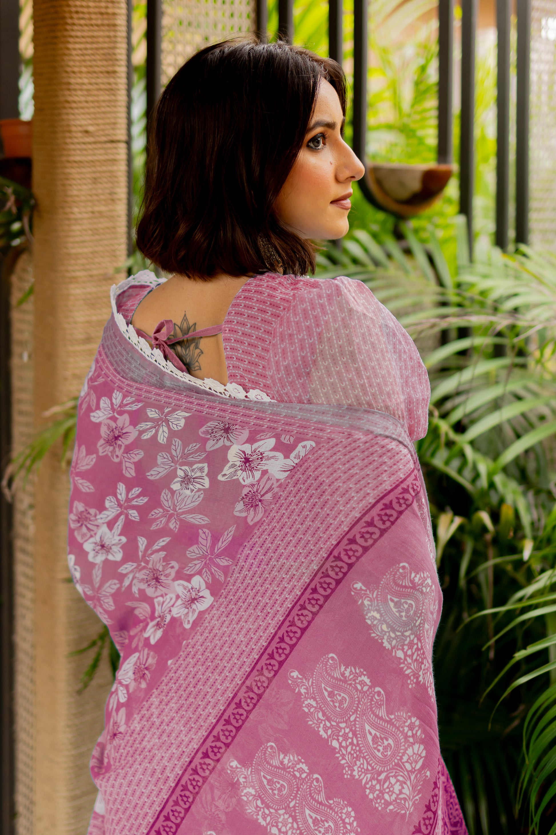 Discover the beauty of tradition with our exquisite cotton saree collection. Each saree is made of Floral Print from high-quality, breathable cotton, ensuring comfort and style for every occasion. With a range of vibrant colors, intricate patterns, and stunning crochet lace borders, these sarees embody the essence of Indian heritage while being perfect for modern wear.