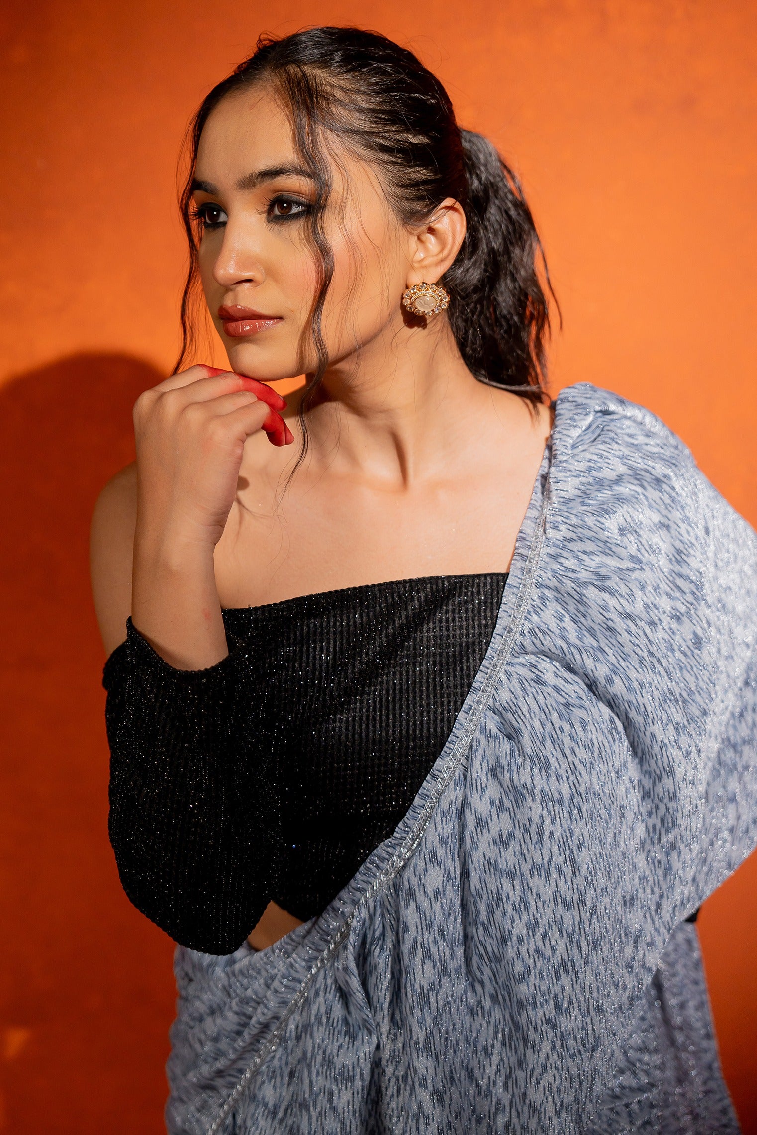 Make a bold fashion statement with our Chic Frill Ruffled lycra ready-to-wear saree, a perfect blend of contemporary style for cocktails, weddings, and special occasion parties. This saree is designed to add a touch of glamour to any event, making you stand out effortlessly. Here’s a detailed look at its features: Pair this saree with statement jewelry, a chic blouse, and stylish heels to complete your fashionable look. The contemporary design allows for various styling options, from traditional to modern.