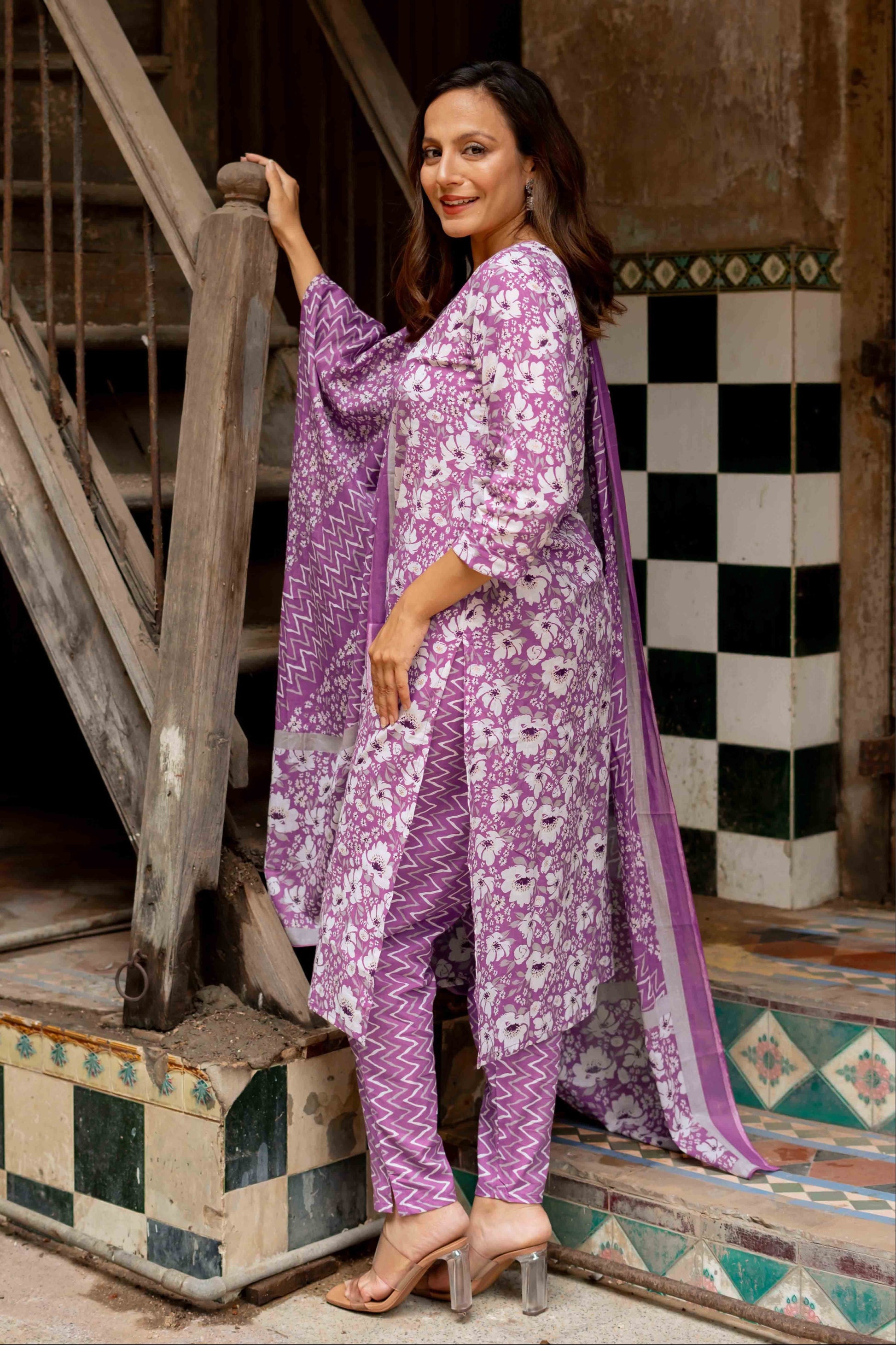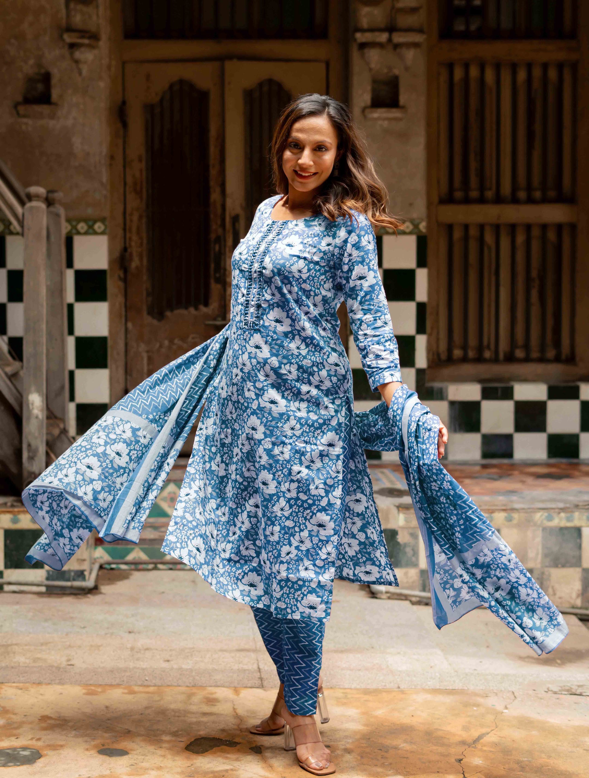 Cotton Floral Print Kurta Set with dupatta