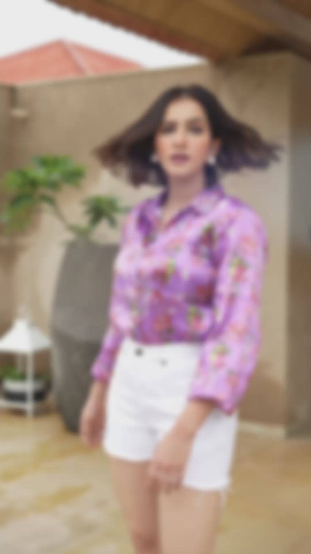 Add a touch of nature to your wardrobe with this Exotic Birds Satin Shirt. Featuring a vibrant purple base adorned with colorful bird illustrations and floral patterns, this shirt is crafted from smooth satin fabric that offers a luxurious feel and a slight sheen. Touch of pearl and stone embellishments on collar is making it perfect for partywear look. The classic collar and button-down front make it versatile for both casual and semi-formal occasions. Paired with white shorts, it creates a fresh and stylish look perfect for any season.