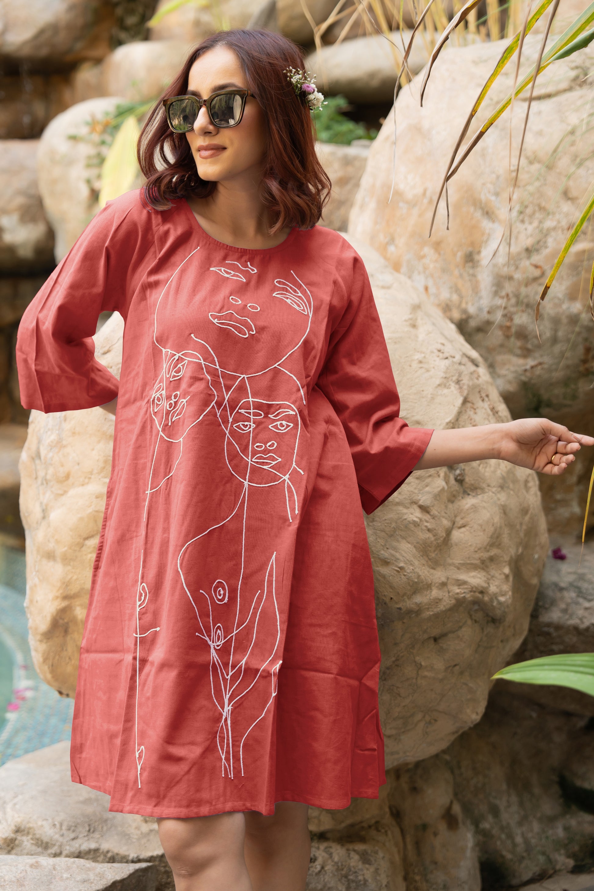 Flawless Color Thread Embroidered Pure Cotton Dress