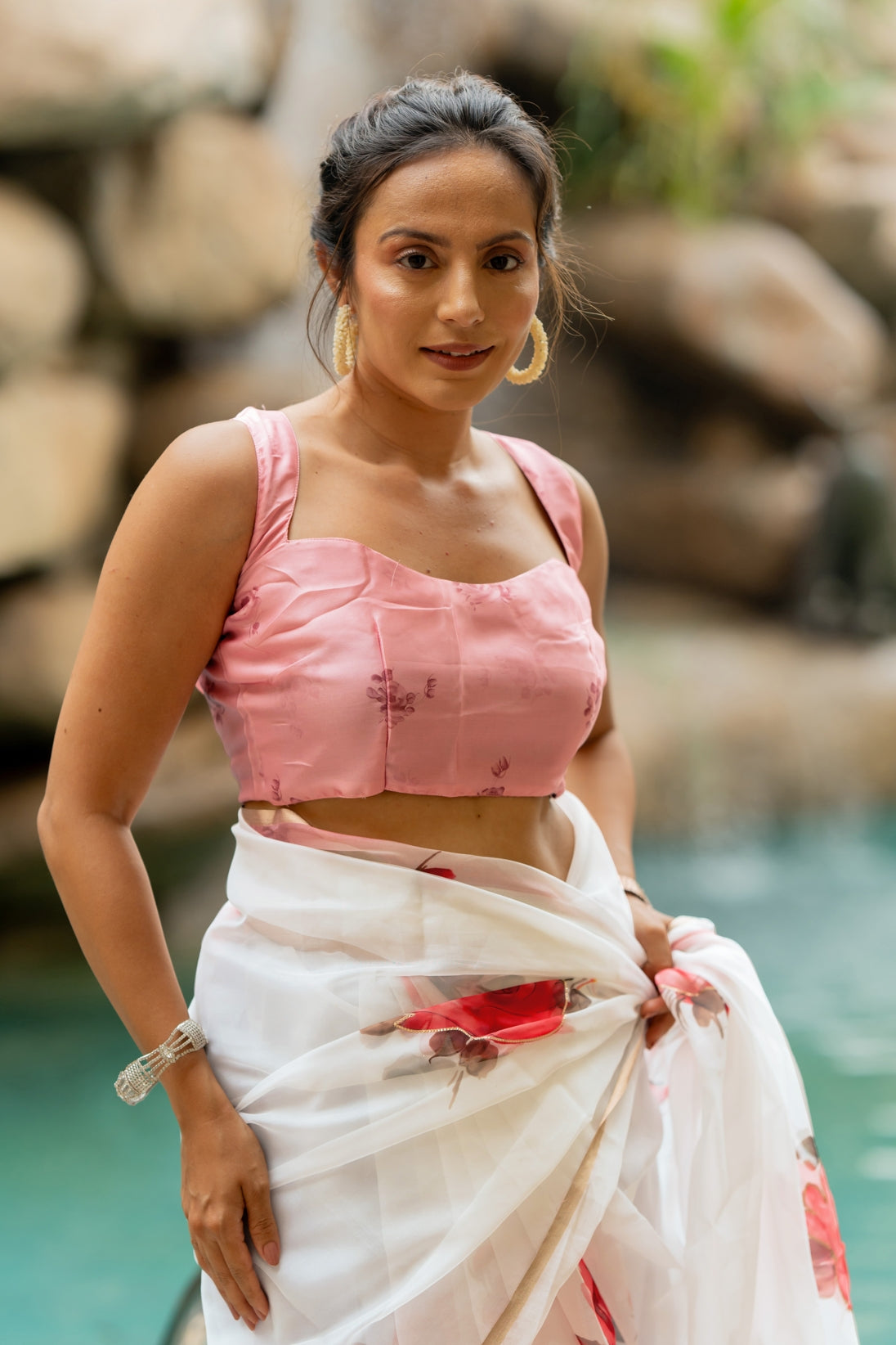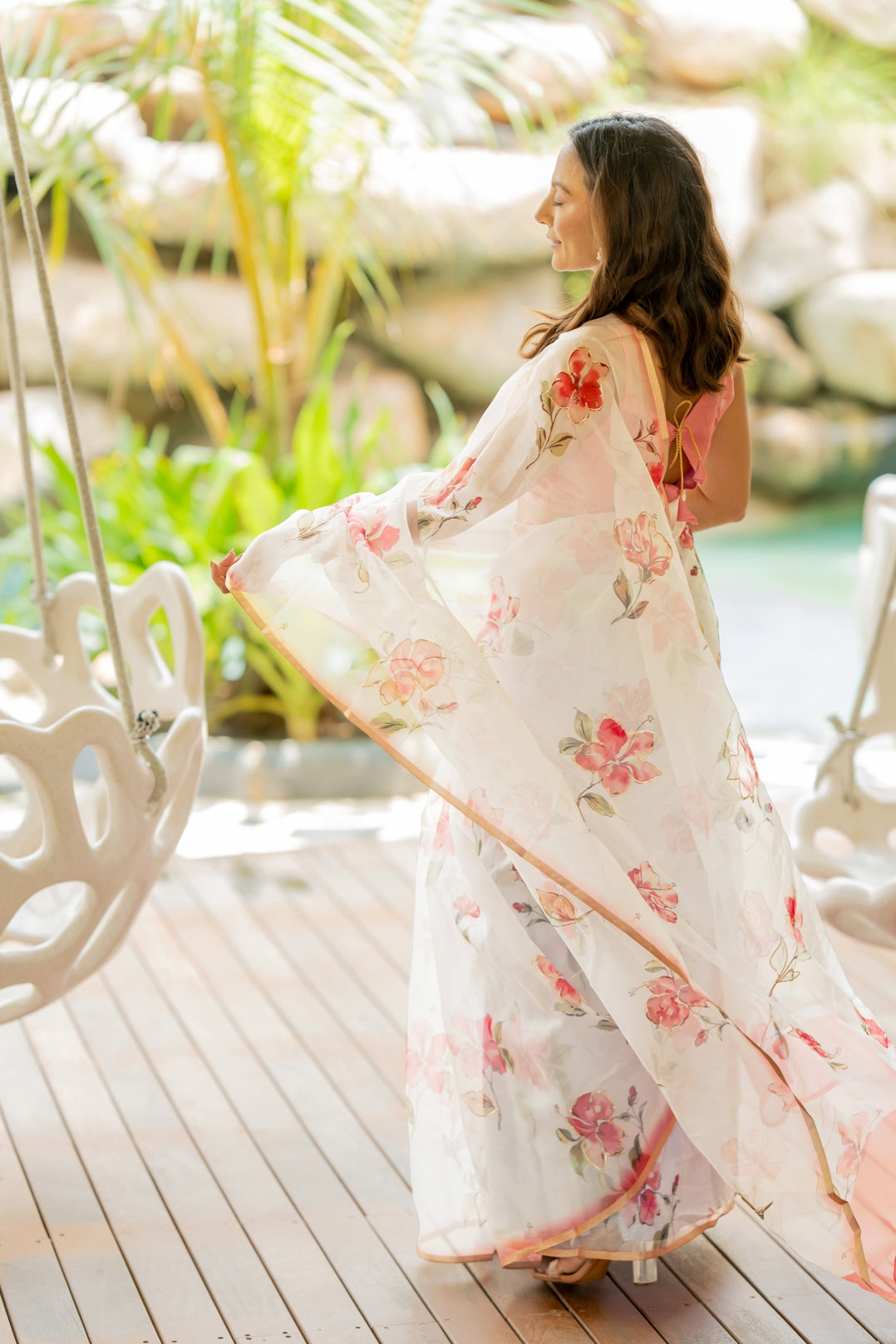 | Adorn yourself in sophistication with our trendy organza saree, featuring delicate Floral prints with Golden Gota Work. Our organza sarees are perfect for a variety of occasions, from festive celebrations and weddings to family gatherings and special events. Designed for women and girls of all ages, these sarees blend traditional craftsmanship with contemporary style. |