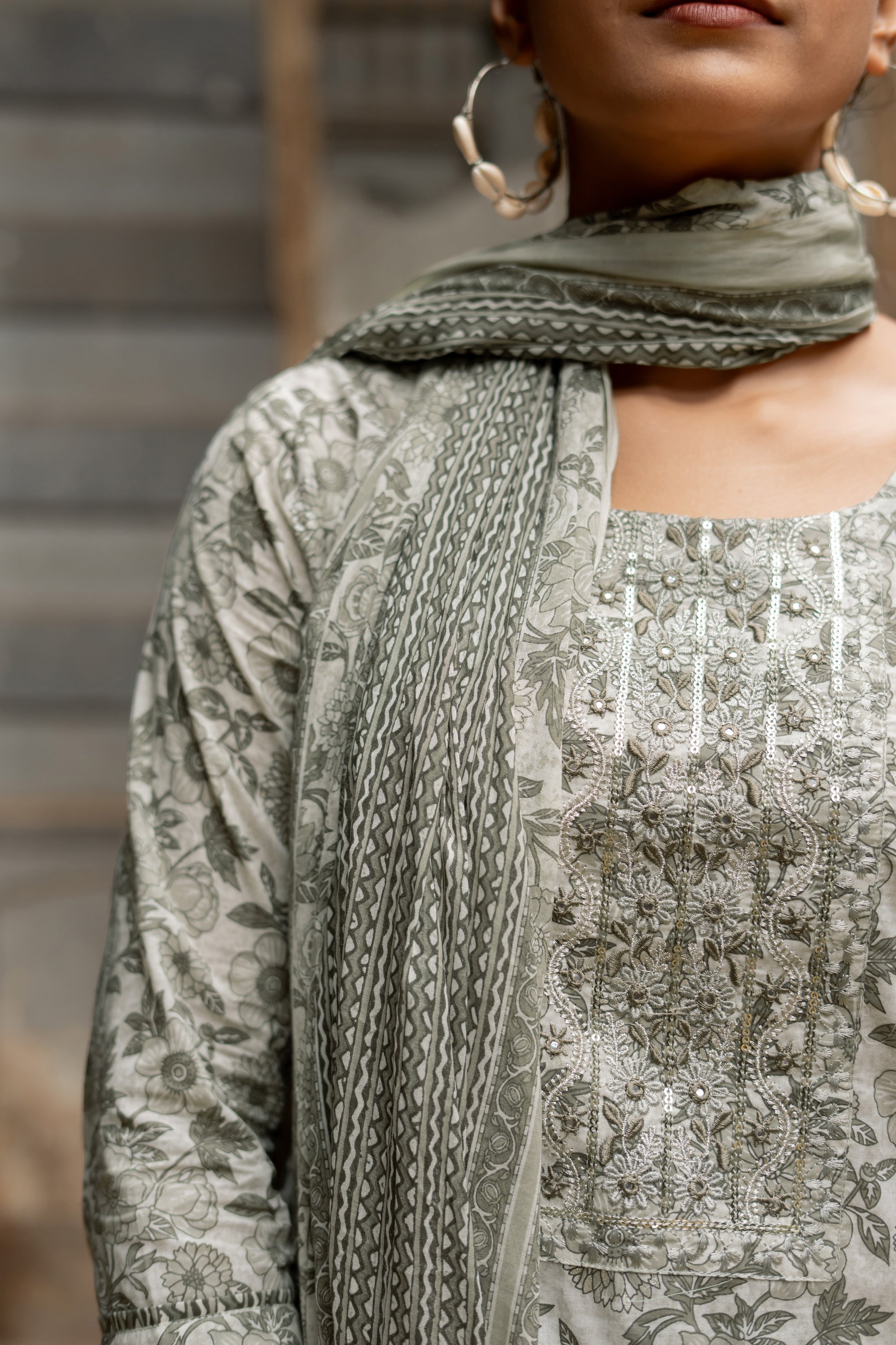 | Embrace the purity of comfort with our elegantly designed kurta set, crafted from pure cotton fabric. The intricate Floral prints with a Sequence touch highlight timeless artistry, while the matching dupatta adds a touch of tradition. Perfect for any occasion, from daily wear to office wear or small social gatherings, this ensemble offers both elegance and breathable comfort, making it an essential addition to your ethnic wardrobe |