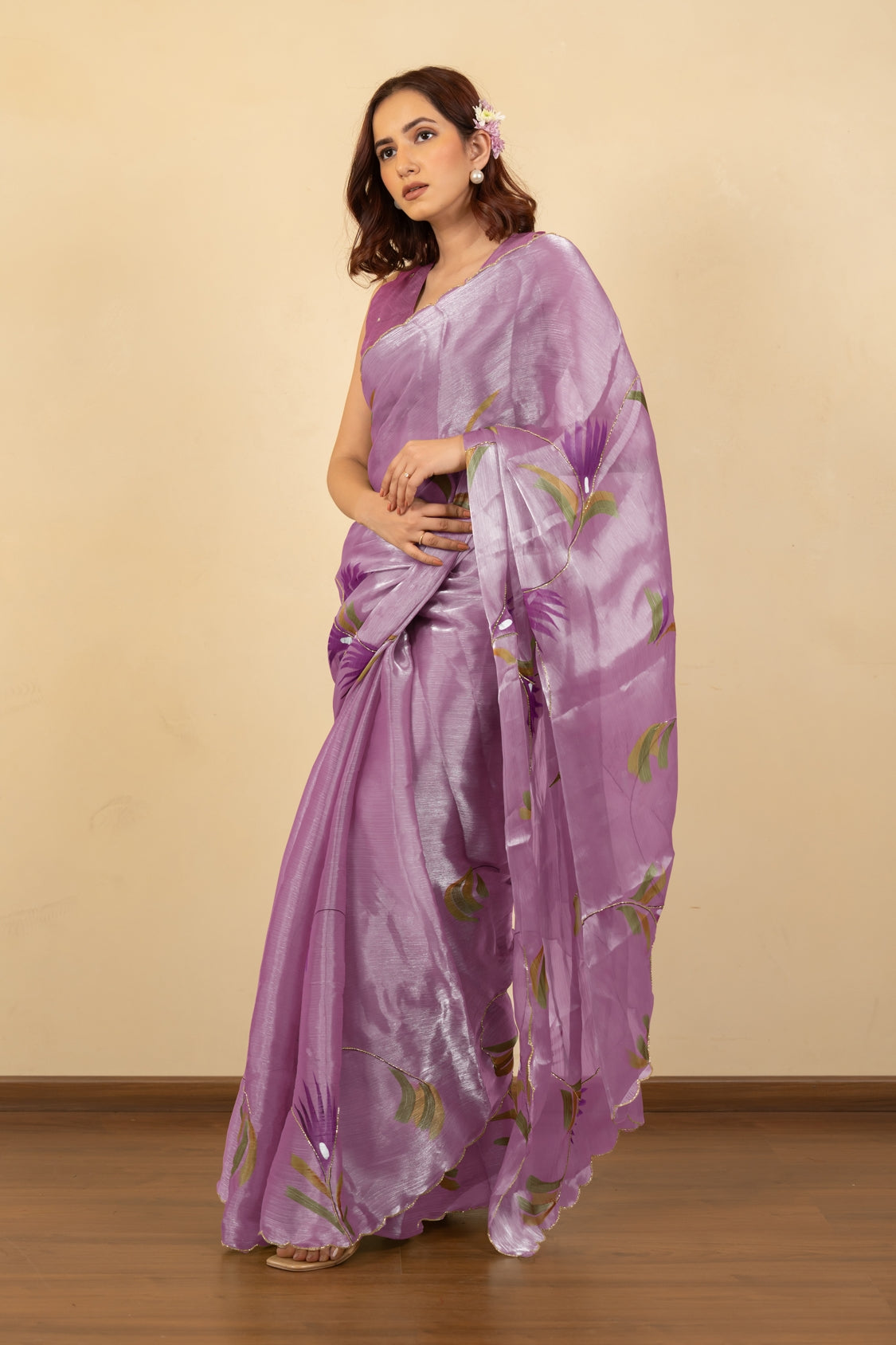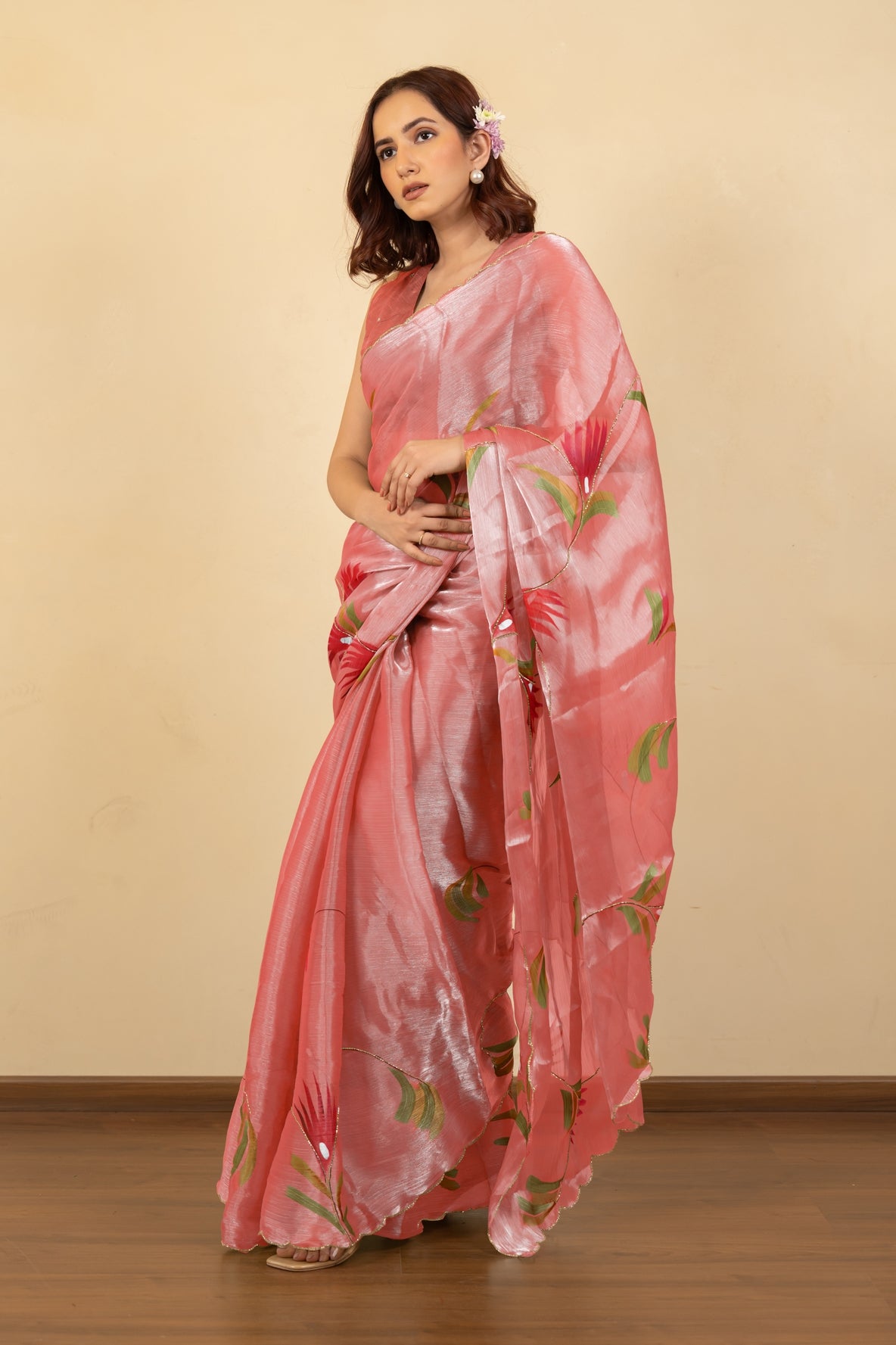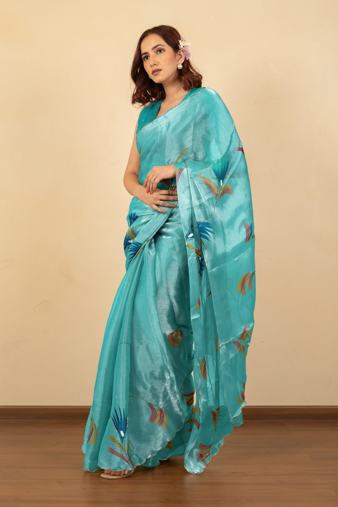 Elevate your ethnic wardrobe with this stunning floral printed organza saree, featuring delicate floral prints and a pipe beads border. Crafted from lightweight, semi-transparent fabric, this saree offers a graceful drape and a breezy, elegant look—perfect for daytime events, festive celebrations, or intimate gatherings.