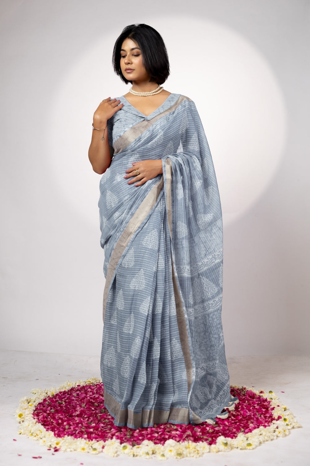 Discover the beauty of tradition with our exquisite cotton blend saree collection. Each saree is made of a Block pattern with Kantha Work and golden zari woven border from high-quality, breathable cotton, ensuring comfort and style for every occasion. With a range of vibrant colors, intricate patterns, and stunning lace borders, these sarees embody the essence of Indian heritage while being perfect for modern wear. This saree is perfect for everyday wear, whether you’re running errands, attending a family gathering, or having a relaxed summer lunch with friends. .This is also perfect for smaller, less formal festive or cultural events like family get-togethers, poojas, or small celebrations with the stylish prints keep you looking chic.