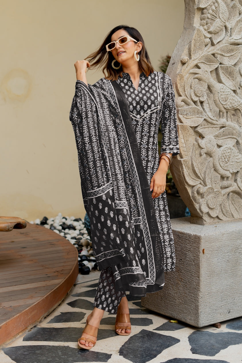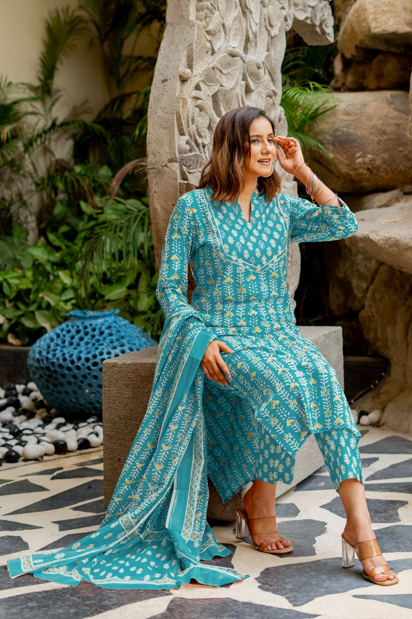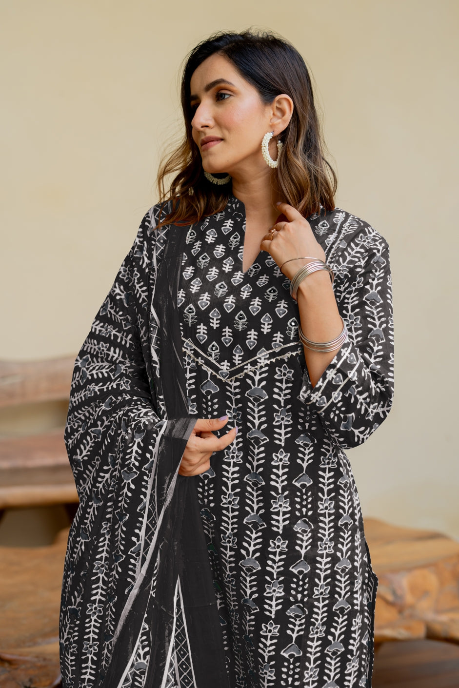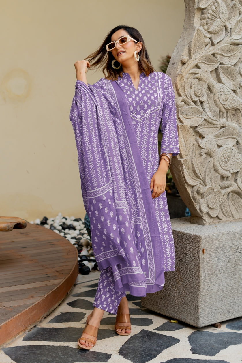 Trendy Cotton Batik Print Kurta Set with dupatta