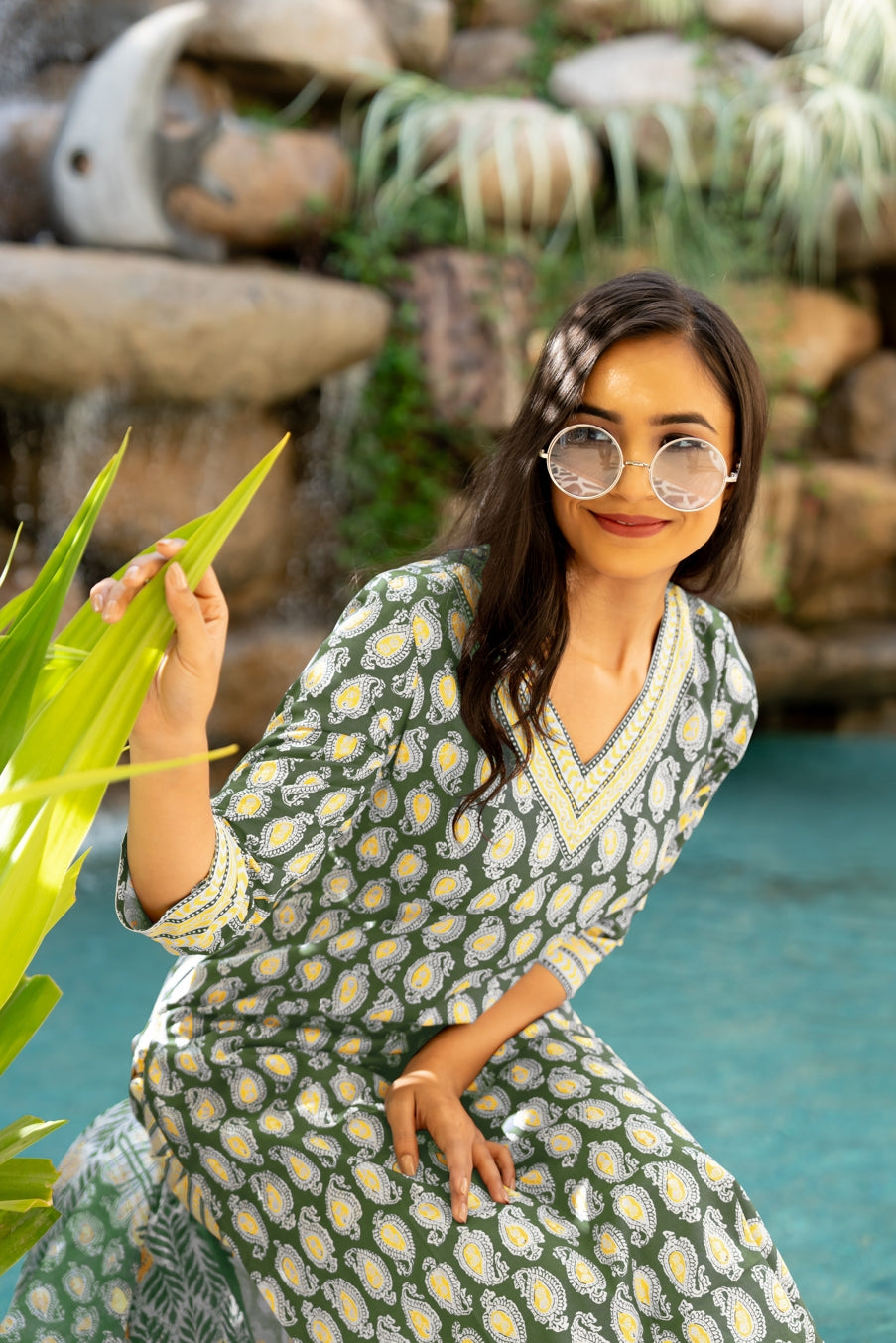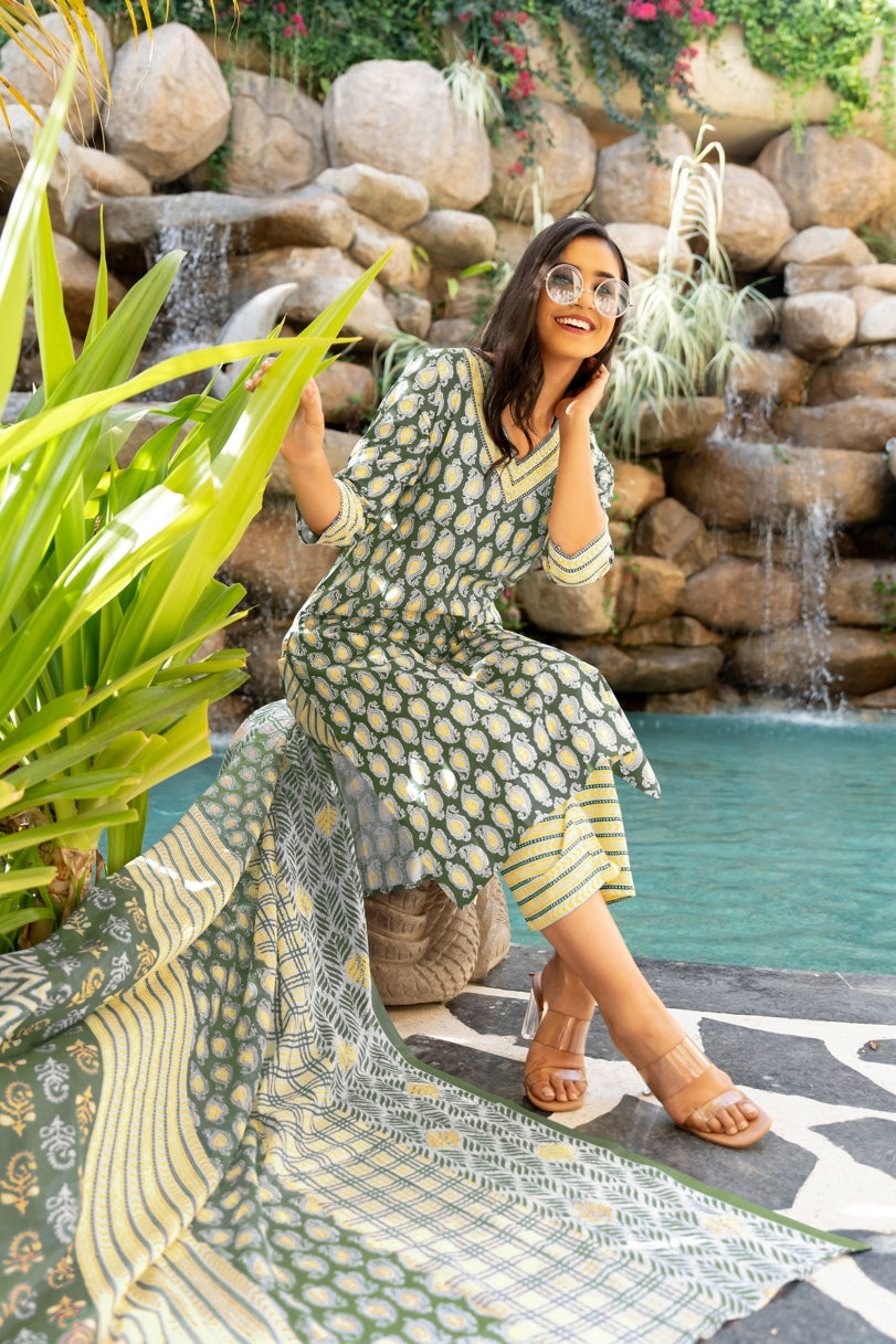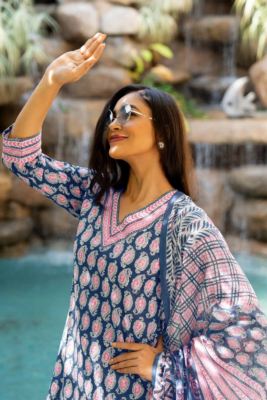 Trendy Cotton Floral Print Kurta Set with dupatta