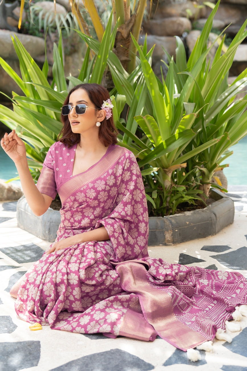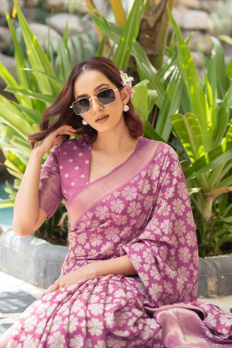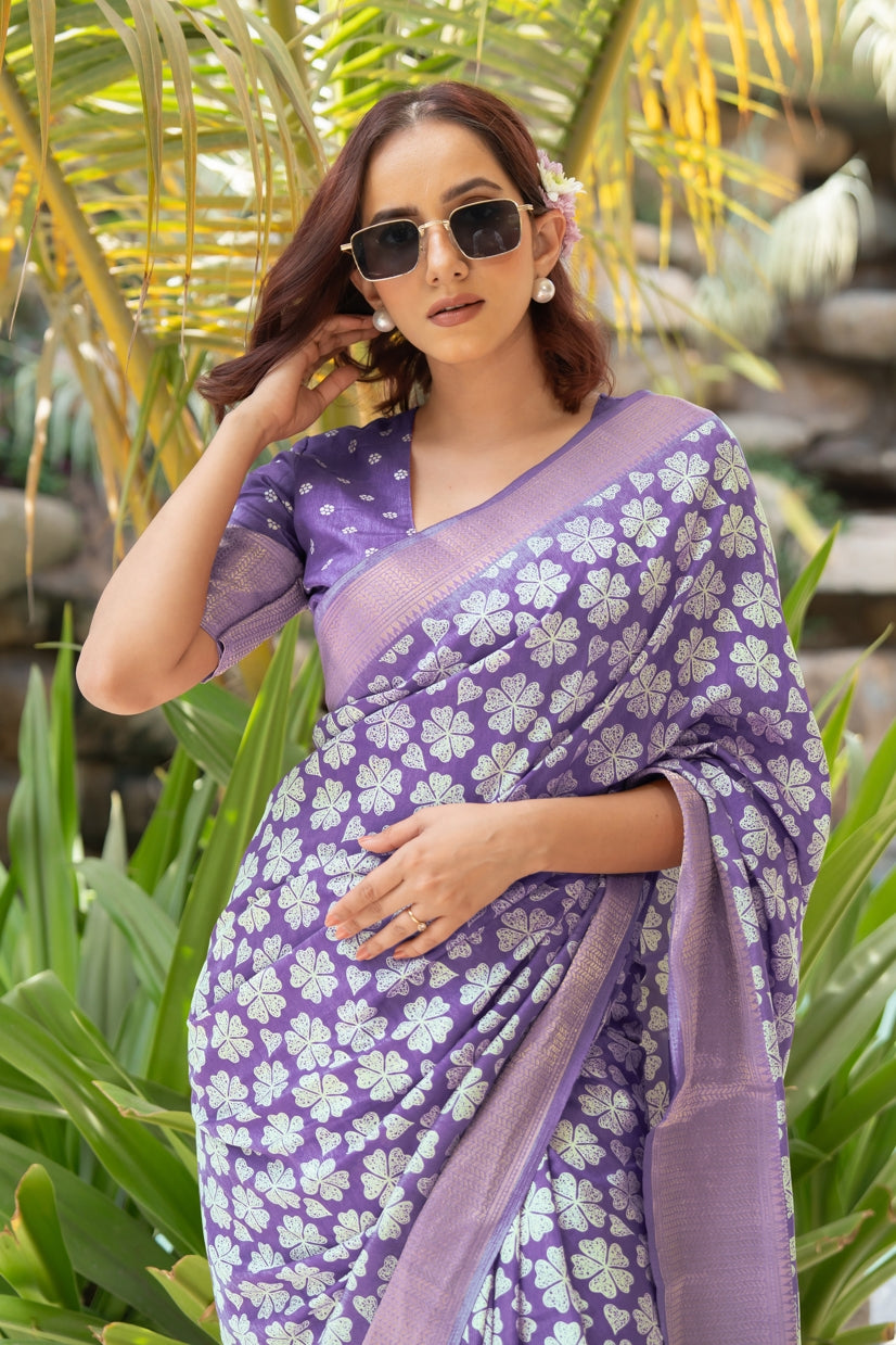 Trendy Cotton Silk Floral Print Saree With Unstitched Blouse