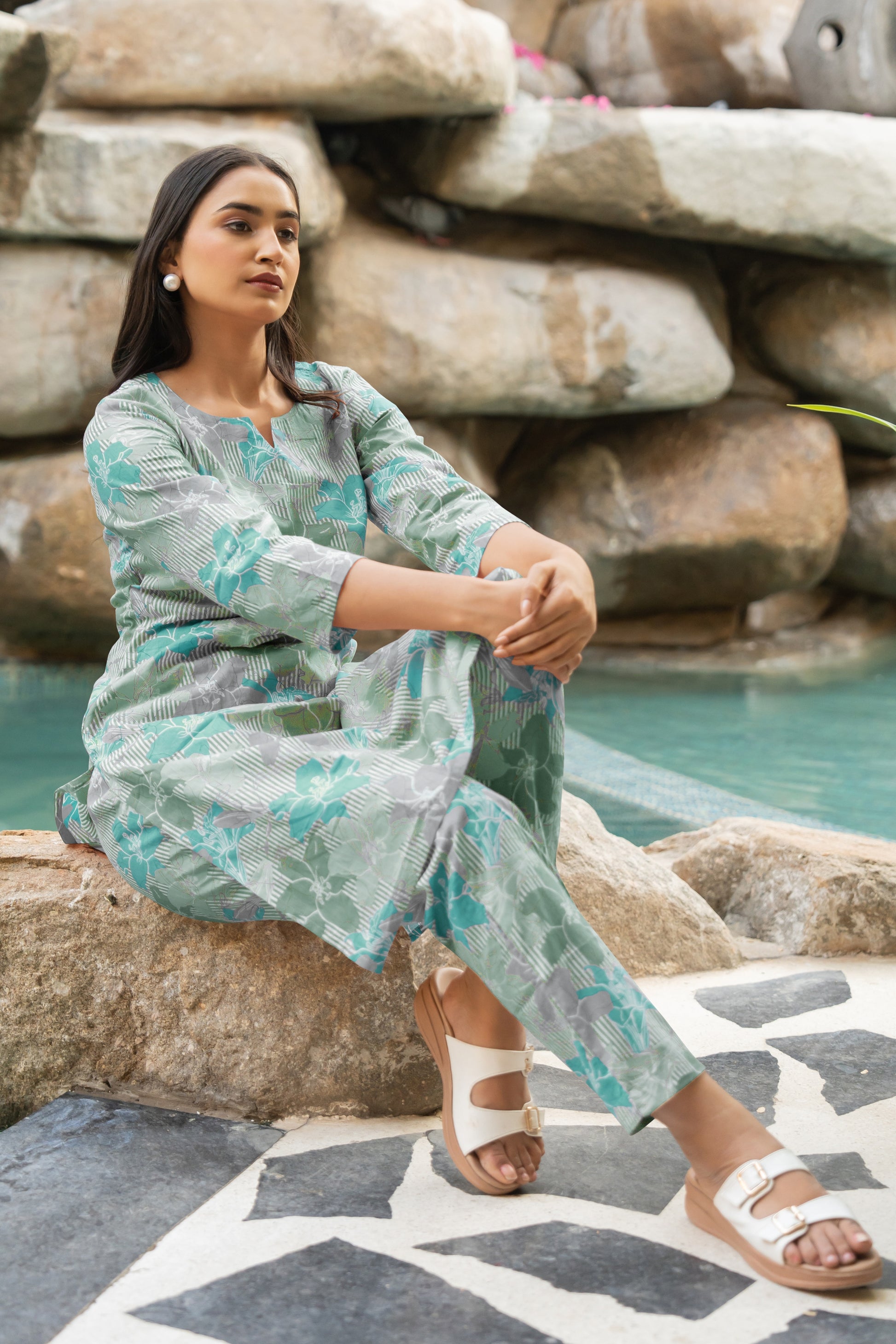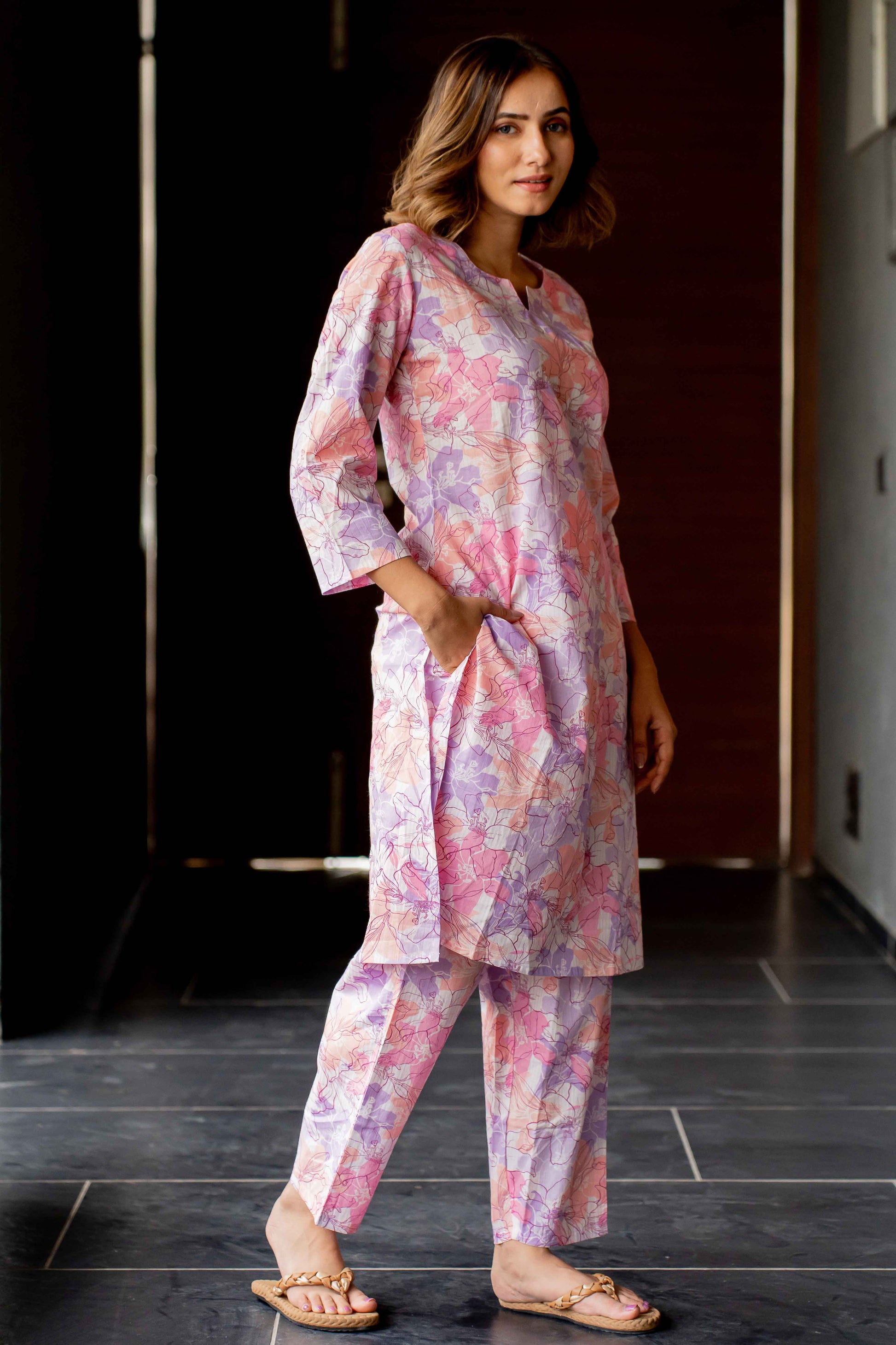 | Relax in style with our floral printed Co-Ord Set, featuring a unique and vibrant pastel floral pattern complemented by a matching headband. This set combines comfort with modern flair, designed for lounging or casual outings. The soft, breathable fabric ensures all-day comfort, while the distinctive pastel color co ord set adds a touch of elegance. Perfect for unwinding at home or adding a chic twist to your casual wardrobe, this co-ord set is a must-have for effortless sophistication. |