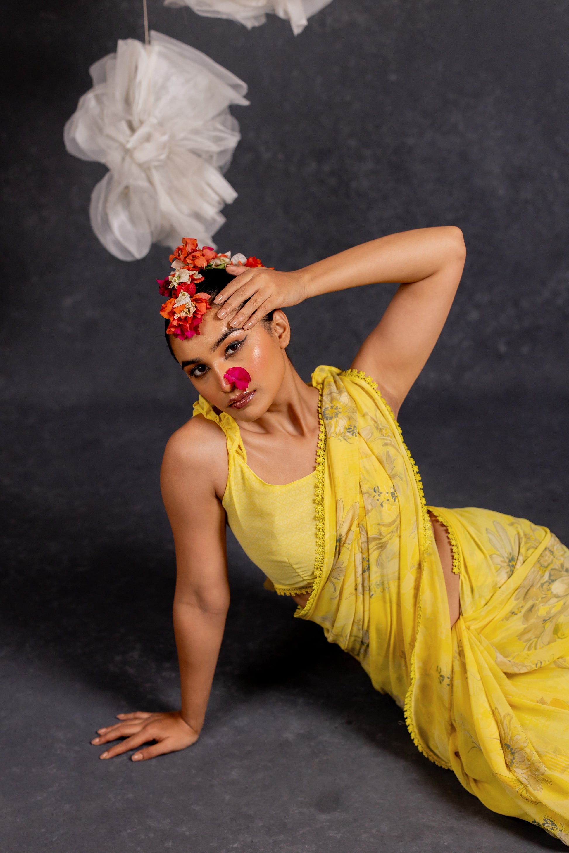 | A floral georgette summer saree with crochet details blends the softness and breeziness of floral patterns with the intricate artistry of crochet, making it a truly unique and stylish choice. Accompanied by a 0.8-meter blouse piece that can be tailored to your exact size and fit, this saree ensures a custom-made and flawless appearance. This combination of floral prints and crochet details makes the saree perfect for daytime events like garden parties, brunches, or weddings, where a fresh, light, and sophisticated look is desired. |
