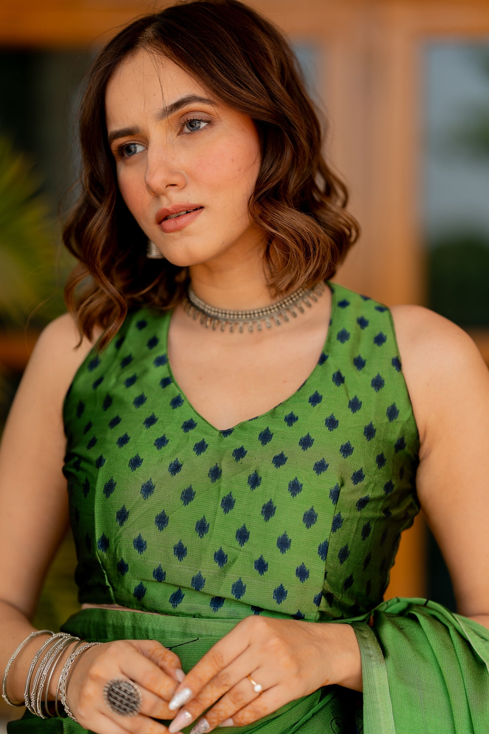 Women's Chiffon Warli Block Print Custom Tailored Artistry Saree